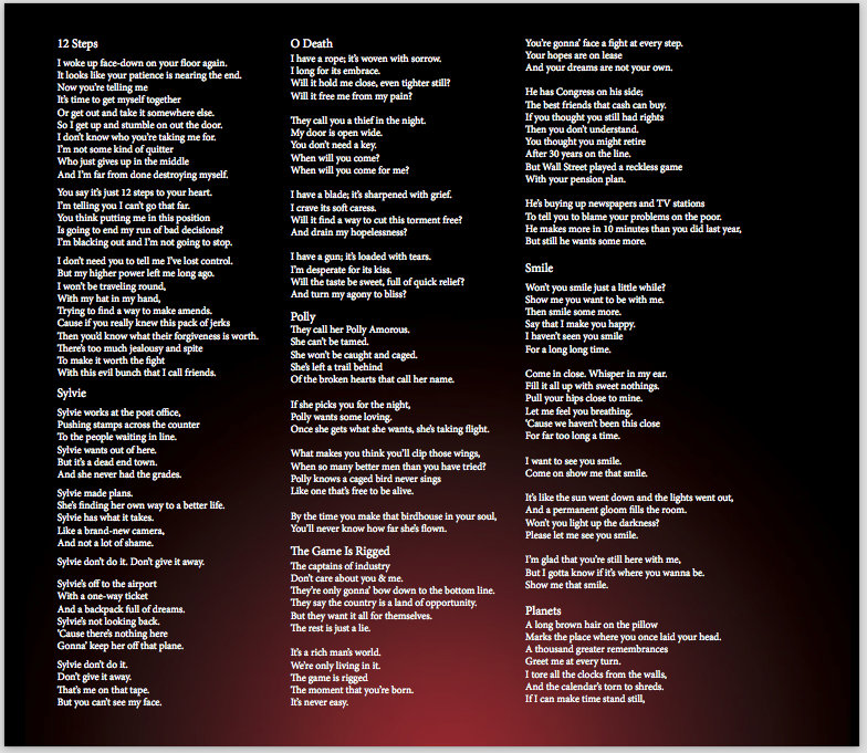 10-Track Audio CD, packaged in a 4-panel wallet including full lyrics.